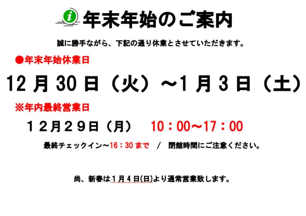 年末年始のお知らせ